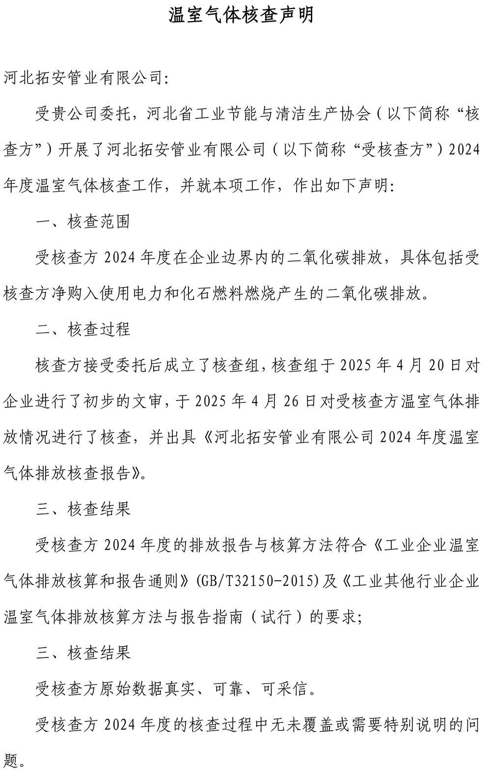 上一篇:河北拓安管業(yè)有限公司2023年度溫室氣體排放核查報告